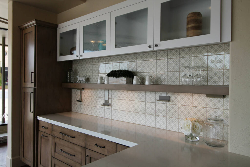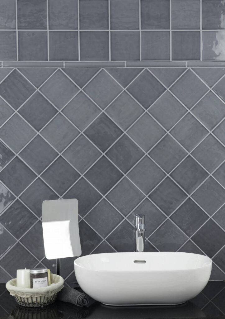 Undulated multi-tone glazes infuse rectangular tiles with warm, handcrafted character.
