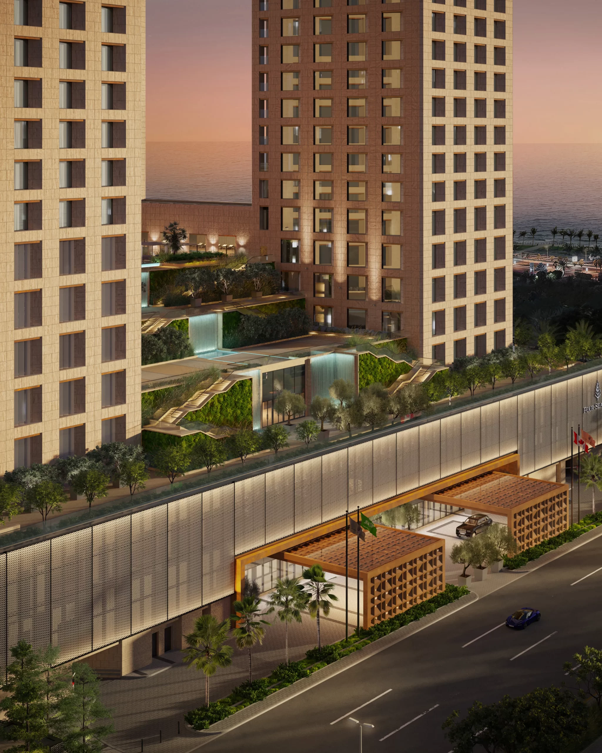 11-floor, 70 000 m² landmark; SENSI porcelain slabs, mosaics and water-saving fittings enrich Four Seasons Riyadh’s 274 keys and expansive event spaces atop Kingdom Centre.